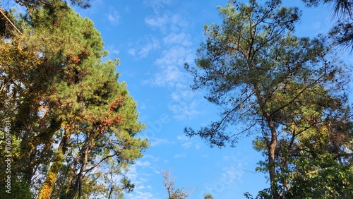 Obraz premium Green trees in a botanical garden on a sunny summer day