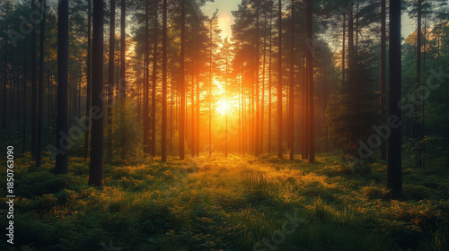 © Pakhnyushchyy, Naklejka premium Green trees in the forest in summer