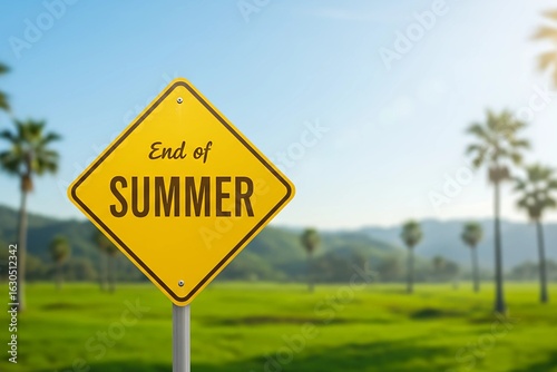 Obraz premium Green Trees Landscape with "End of Summer" Sign