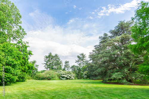 © Nomad_Soul, Fototapeta premium Green trees on grass meadow.