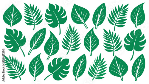 © Neelima_Parboti, Obraz premium Green tropical leaves pattern on white background leaf