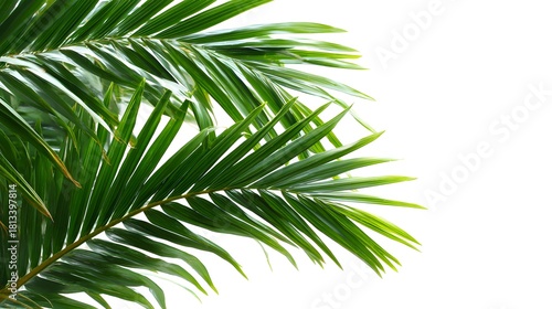 Fototapeta premium Green tropical palm leaves isolated on white background, exotic jungle foliage border, summer design element and natural botanical composition
