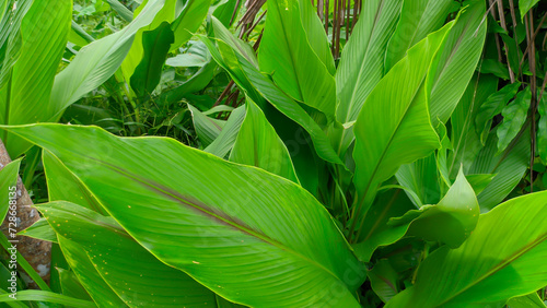 Obraz premium Green turmeric herbal plant or Curcuma longa leaves