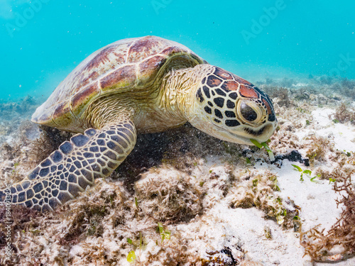 Obraz premium アマモを食べている。 アオウミガメ, Green Turtle, Green Sea Turtle, Chelonia mydas, ウミガメ科,...
