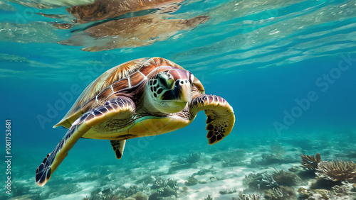 Fototapeta premium green turtle swimming in sea