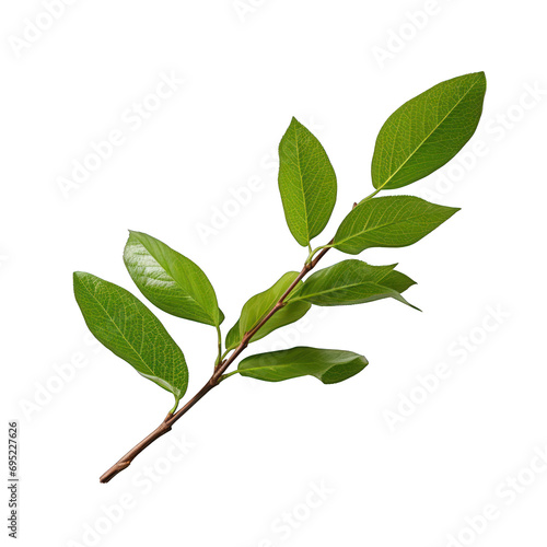 Fototapeta premium Green Twig with Leaves Isolated on Transparent or White Background, PNG