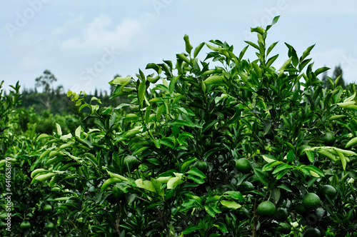 © 曹宇, Obraz premium Green unripe orange fruit on tree