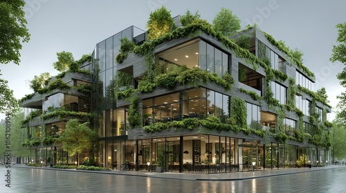 Obraz premium Green Urban Development: Contemporary Sustainable Skyscraper in a Smart City Environment