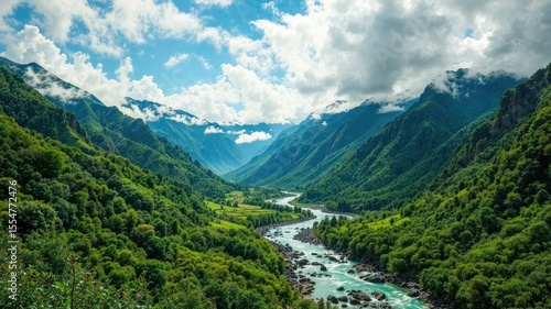 © Chaowarat, Obraz premium Green Valley River Flow