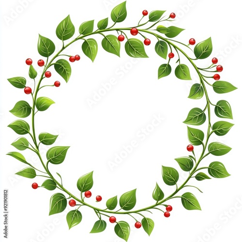 © Tung's companion, Fototapeta premium Green Vine Wreath with Red Berries