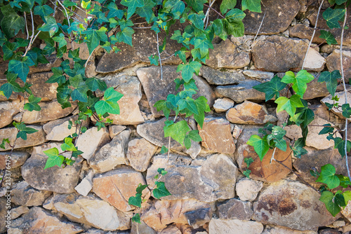Fototapeta premium Green vines on an old stone wall