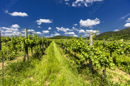 © babaroga, Obraz premium green vineyards rows landscape