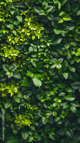 © Lin_Studio, Obraz premium green wall of green leaves and plants