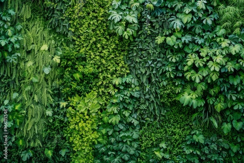 © artemstepanov, Obraz premium Green Wall Texture, Vertical Garden Background, Eco Bio Room Interior, Live Plans Pattern, Herbs, Creepers