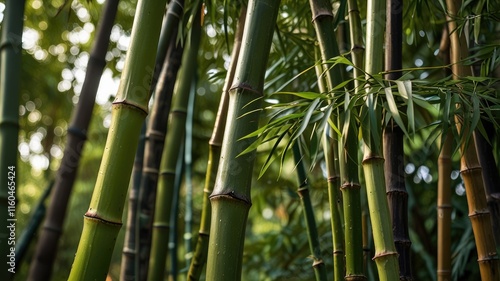Fototapeta premium green wallpaper, Close-up of fresh bamboo stalks against vibrant greenery