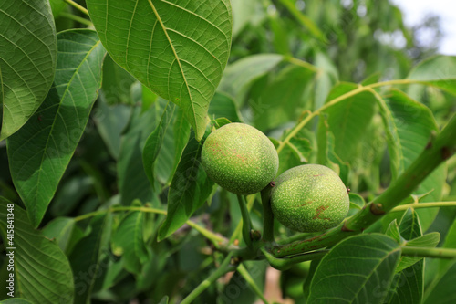 © zhang yongxin, Obraz premium Green walnut in orchard, North China