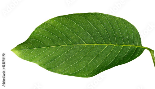 © dule964, Obraz premium Green walnut leaf isolated on white background, clipping path