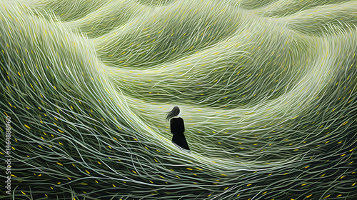 © sunnie, Obraz premium green wave of the explosion surreal illustration landscape painting decorative painting