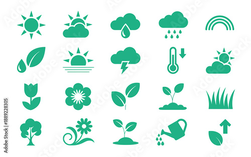 © Salim, Naklejka premium Green Weather and Nature Icons Set