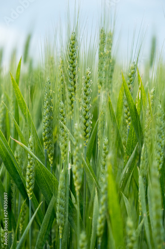 © Neeqolah, Obraz premium Green wheat ear spikes close up