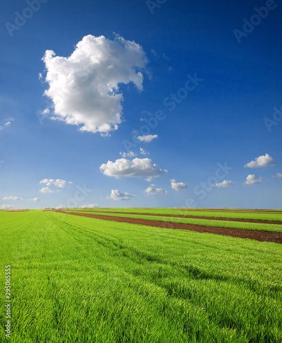 © Željko Radojko, Fototapeta premium green wheat field against a blue sky