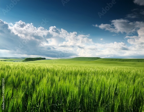 © Bonita, Fototapeta premium green wheat field and cloudy sky