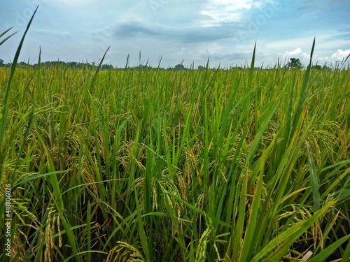 © MohFuadAzhar, Fototapeta premium green wheat field and sky.rice field