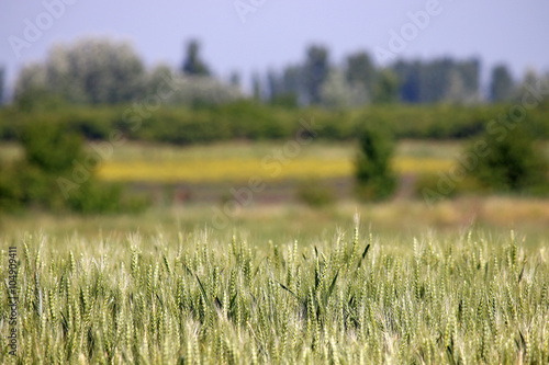 © goce risteski, Obraz premium green wheat field landscape spring season