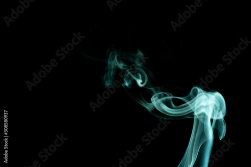 © Phillip Rubino, Fototapeta premium Green whispy and wavy smoke abstract on a black background