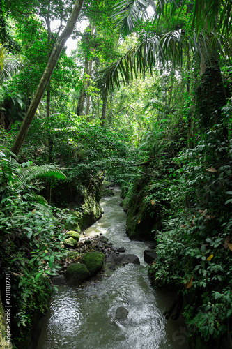 © Ivan Kurmyshov, Fototapeta premium Green wild jungle forest and flowing river