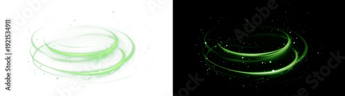 Fototapeta premium Green Wind Swirl Energy Ring with Leaves and Particles, Transparent and Black Background Versions