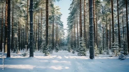 Naklejka premium green winter pine trees