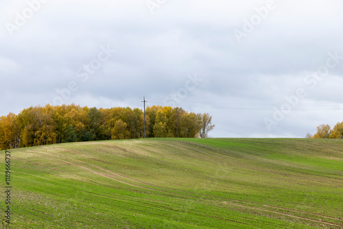 © rsooll, Fototapeta premium green winter wheat in the field during the autumn season