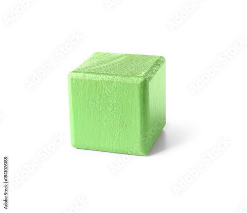 Fototapeta premium Green wooden cube on white background