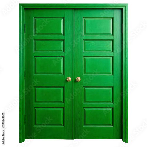 © Rhony, Fototapeta premium Green wooden door isolated on transparent background