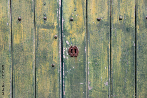 Fototapeta premium Green, wooden, vintage background with keyhole.
