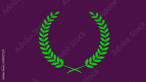 Obraz premium Green wreath icon on pink dark background, Amazing wheat logoicon