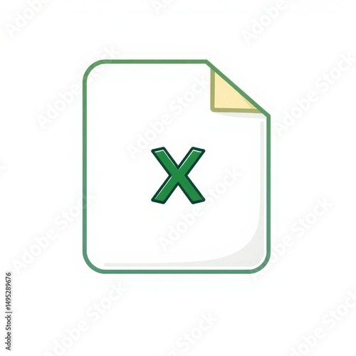 Fototapeta premium Green X Icon on Document: Cancel Button, Close Symbol, Flat Design