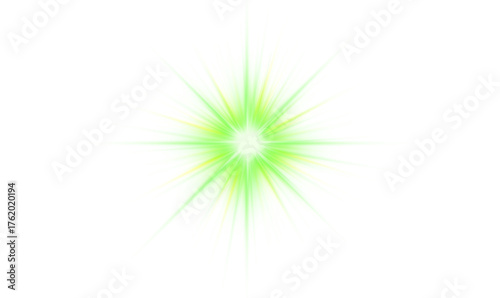 Fototapeta premium Green-yellow PNG star with sparkling light and radiant glow. Bright sparkles...
