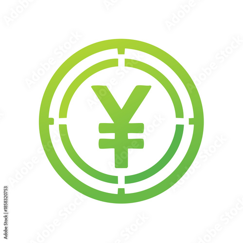 © FryArt, Obraz premium Green Yen Symbol Surrounded by a Circular Target Icon, Financial Goal, Investment Concept