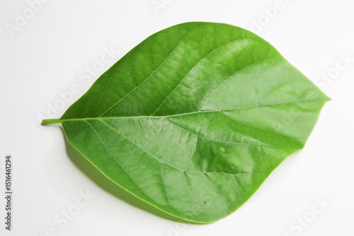 © nitinut380, Fototapeta premium Green young avocado leaf on white background
