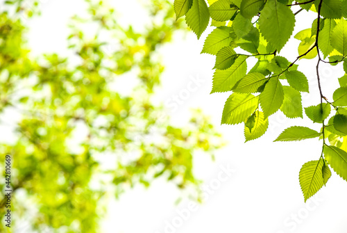 © Андрей Иванов, Fototapeta premium Green young leaves on isolated white background.