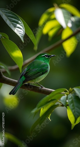 © Rima Akter, Obraz premium Greencrowned brilliant hummingbird perched on a branch surrounded by lush green leaves in a tropical rainforest in costa rica