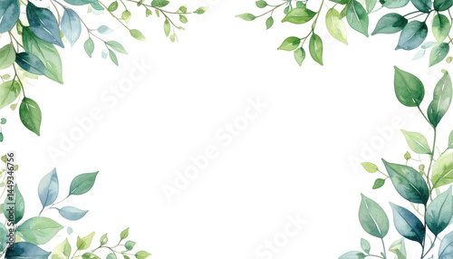 © cinta, Naklejka premium Greenery Frame with Watercolor Leaves for Elegant Designs