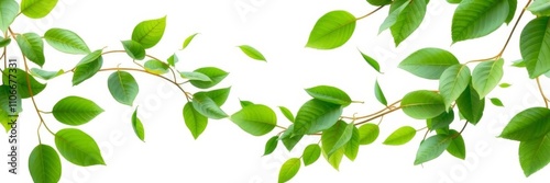 © Chalermrach, Fototapeta premium Greenery leaves swirling in a dynamic movement around a central copy space on a white background, created through AI generative technology, white background, leaves