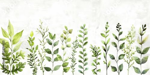Obraz premium Greenery setup illustrated in delicate watercolor strokes