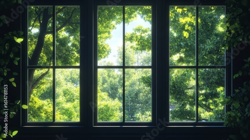 © PikePicture, Naklejka premium greenery window with trees