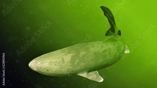 © dottedyeti, Obraz premium Greenland shark swimming, Somniosus microcephalus, shark with the longest known lifespan of all vertebrate species