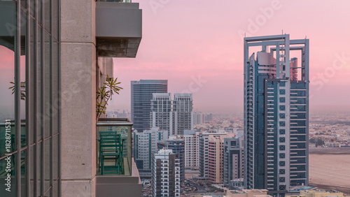 Naklejka premium Greens district aerial view from top night to day timelapse.