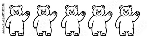 Fototapeta premium Greeting Bears in a Row: A charming lineup of five friendly cartoon bears...